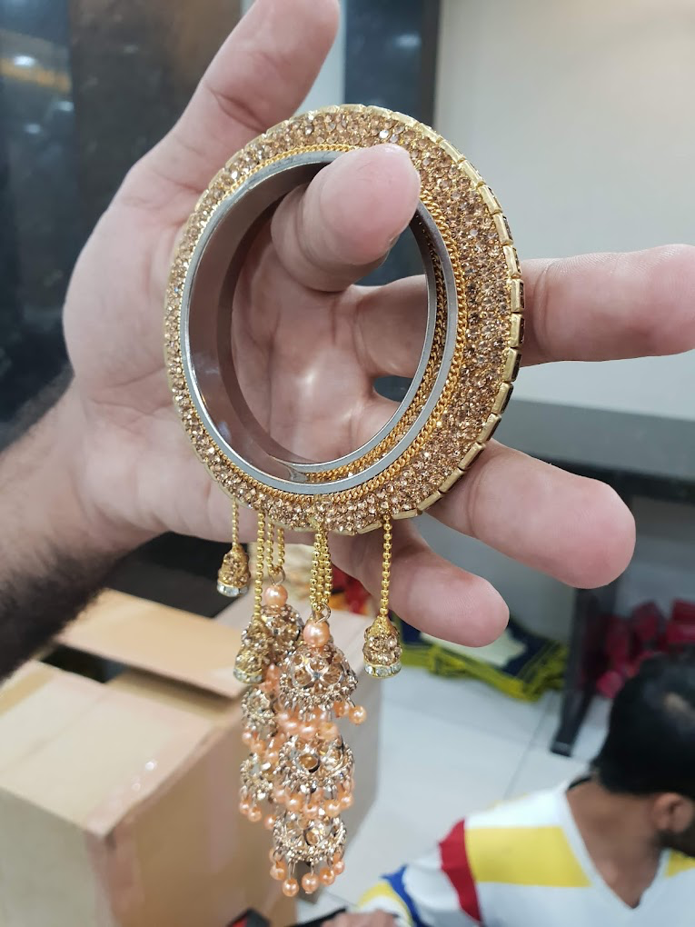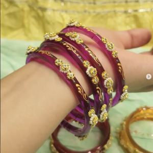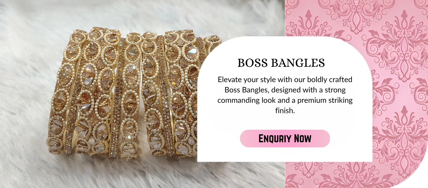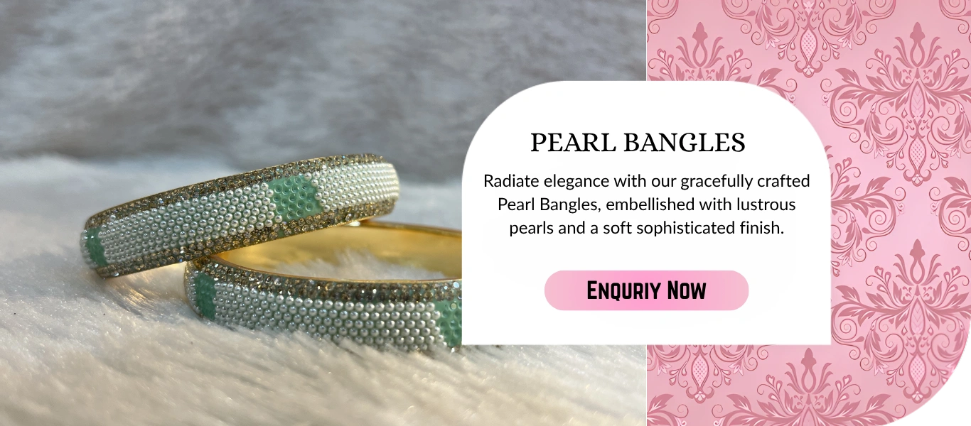 We offer a beautiful collection of bangles and jewellery, including traditional glass bangles, bridal bangle sets, kundan bangles, pearl bangles, designer bangles, daily-wear bangles, festive collections, and customized bangle sets. Our designs are suitable for weddings, festivals, gifting, and everyday elegance