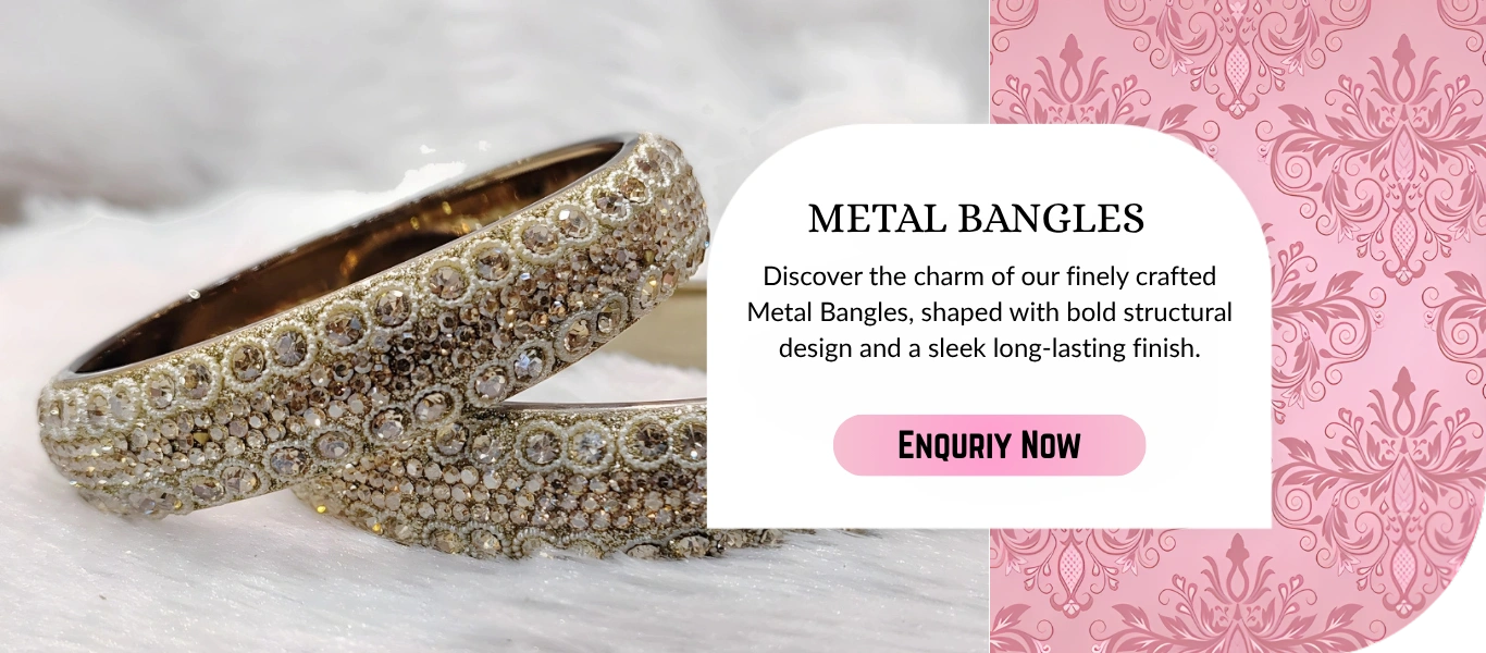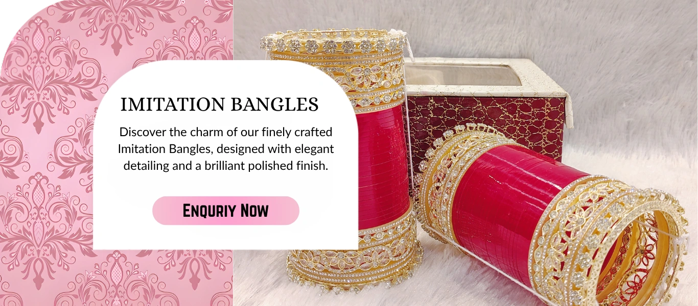 With 13 handcrafted collections and 100+ designs each, we have something for every customer demand. Choose traditional glass or lac bangles for everyday wear, brass or Meenakari for ethnic collections, and bridal Punjabi chura or Rajwadi chura for wedding season. Not sure? Our team will help you pick bestsellers that move fastest in your market — just hit Enquiry Now!