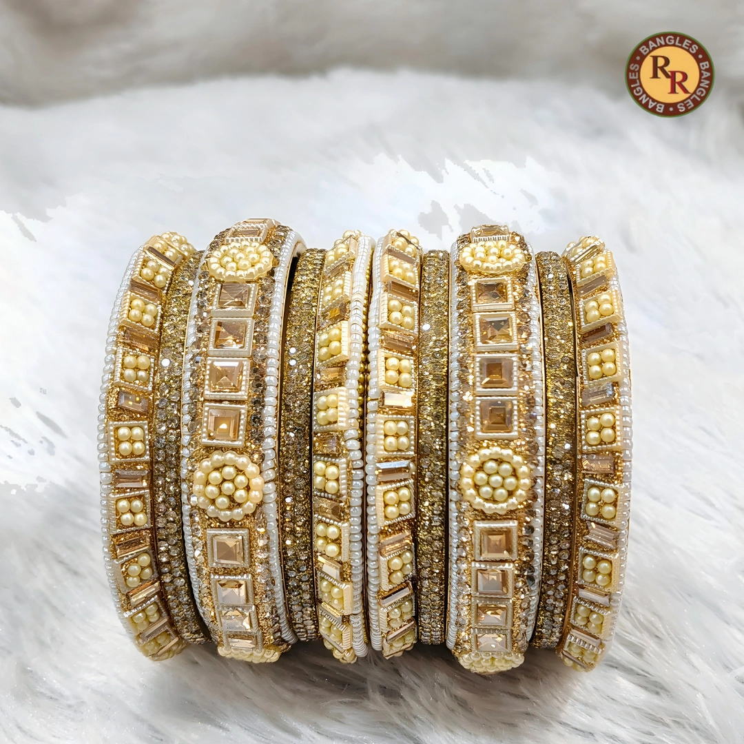 New arrival ivory silk thread boss bangle set, antique gold kundan square mirror & medallion work. Premium bridal. Bulk wholesale for retailers & exporters.